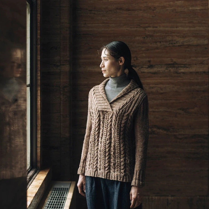 This issue features twelve knitwear designs created with special attention to silhouette and pattern in subdued shades.