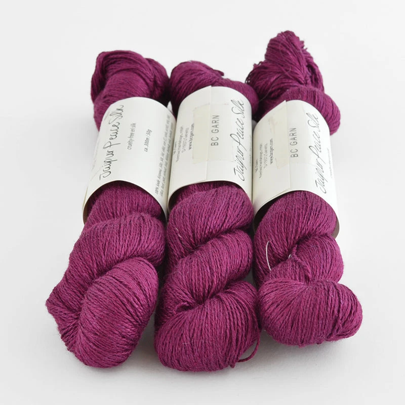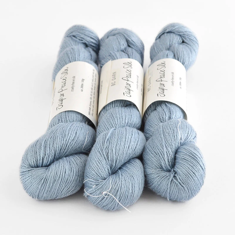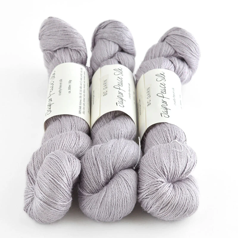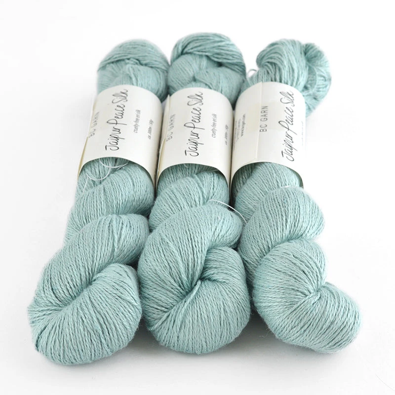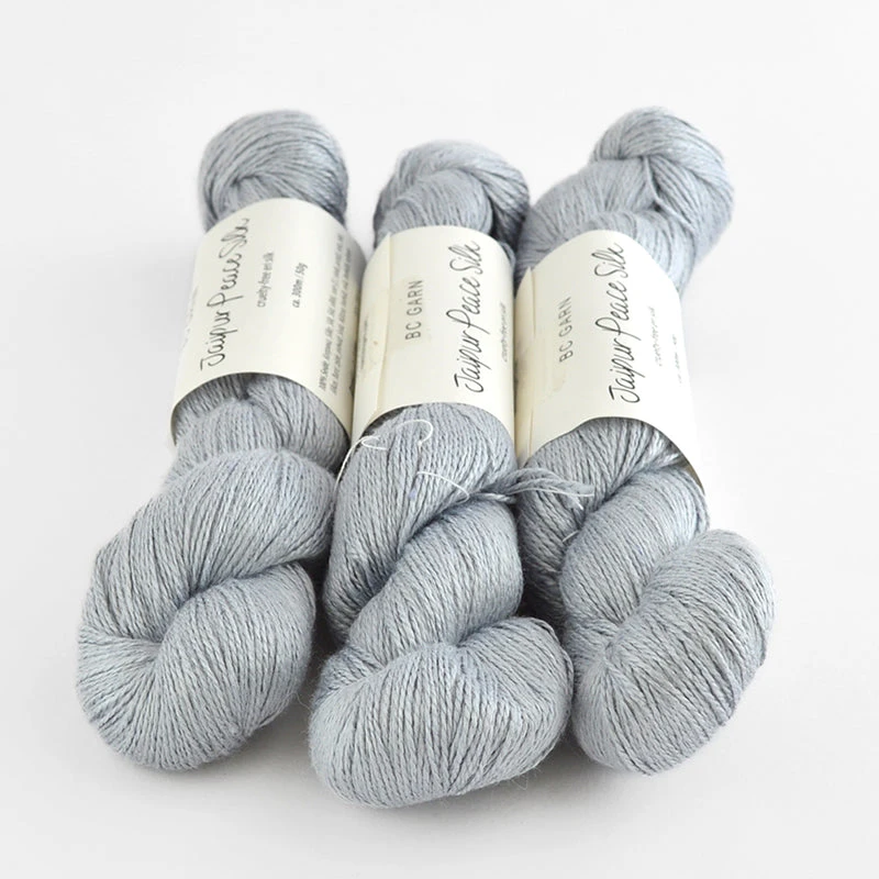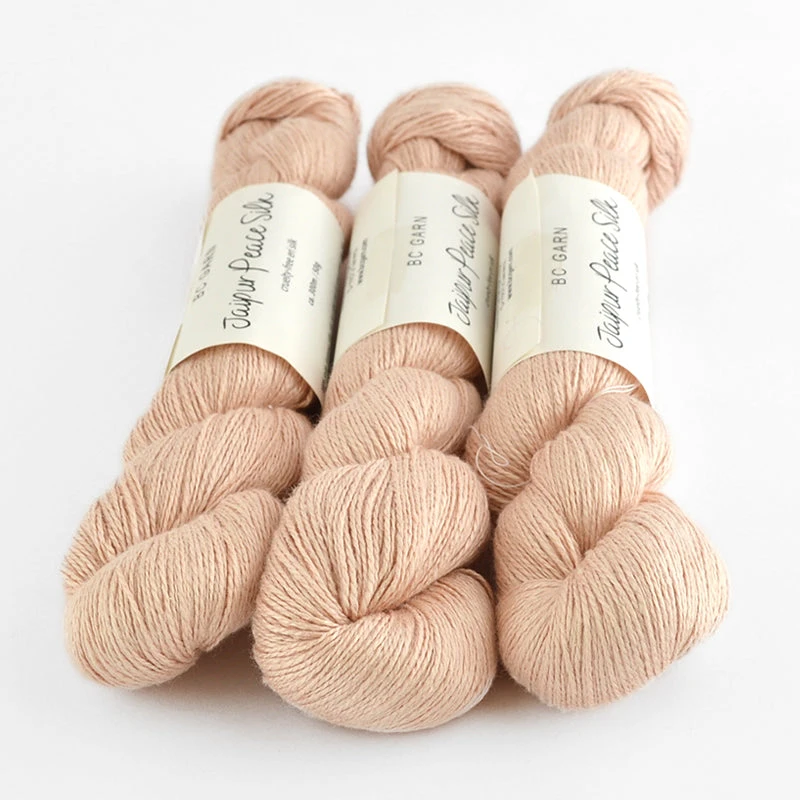 The Eri silk yarn from BC Garn – Jaipur Peace Silk is harvested in a completely cruelty-free manner at a farm in Northeast Thailand. The cocoons of the Eri silkworm, which is a different breed than the mulberry silk worm, are gathered by hand after the worm has naturally left the cocoon. This process allows for a softer and more eco-friendly silk yarn, with a subtle shimmer and a drapey feel. With the same gauge as BC Garn’s Jaipur Silk Fino, this yarn is a great alternative for animal-friendly hand-knitting.
