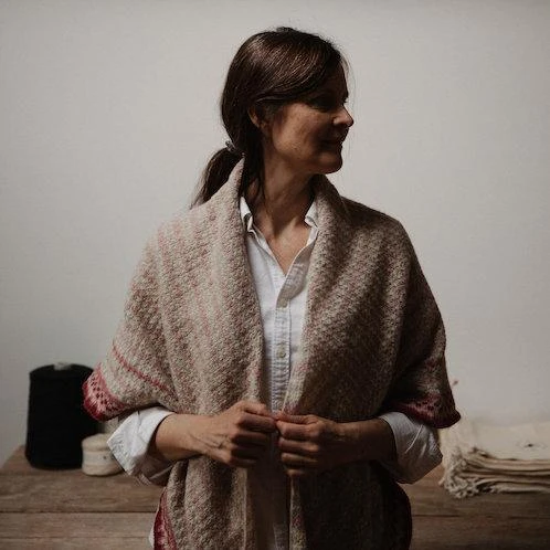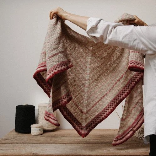 The no. 41 shawl is knit flat, top down, using one color at the time, fair-isle knitting is only for the border