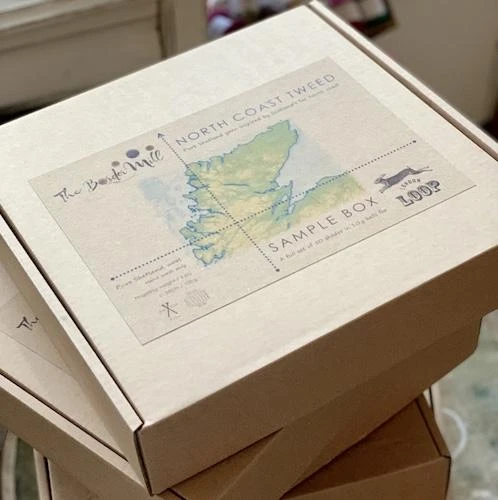 This is a beautiful box of yarn from The Border Mill of 50 mini balls of North Coast Tweed, a firm favourite yarn at Loop!
