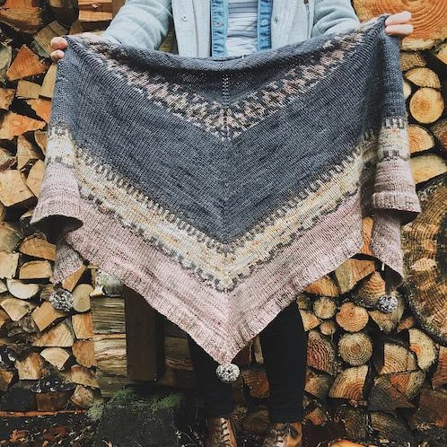 As winter settles in and days grow shorter, it’s natural to search out as much coziness as possible. You may already be familiar with the Danish concept of “hygge” – well, this shawl is inspired by that same concept, and is appropriately named after the Finnish word for “cozy”! Cold countries know how to manage through brutal winters while keeping smiles on their faces, and colorwork is a great way for knitters to stay happy and inspired through long nights by the fire. Flat colorwork might seem intimidating, but this shawl will cure you of that worry with its smaller colorwork sections broken up with stockinette. You’ll finish with a new skill and a warm shawl that blocks the wind. The pompoms are optional, but really, what winter knit is complete without a pompom or three to inspire a few snowball fights? Embrace winter in all its glory, and stay cozy while you’re at it!