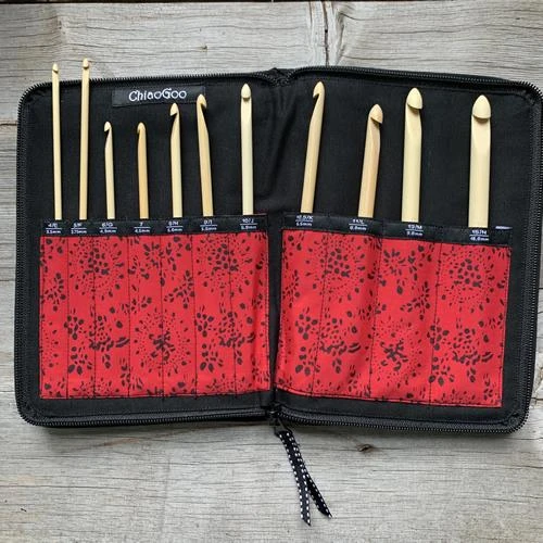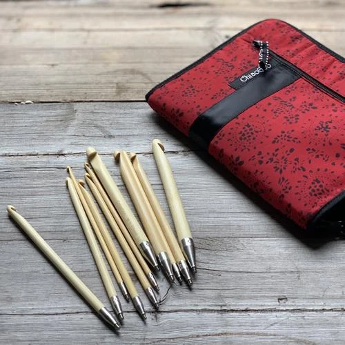 Chiaogoo T-Spin Tunisian Interchangeable Hook Set are possibly one of the best sets of Bamboo Tunisian hooks you will find. Using the same Moso bamboo found in Chiaogoo’s Spin Interchangeables sets, these hooks have a pointy head to get your stitches and the Chiaogoo virtually seamless, stainless steel cable join.