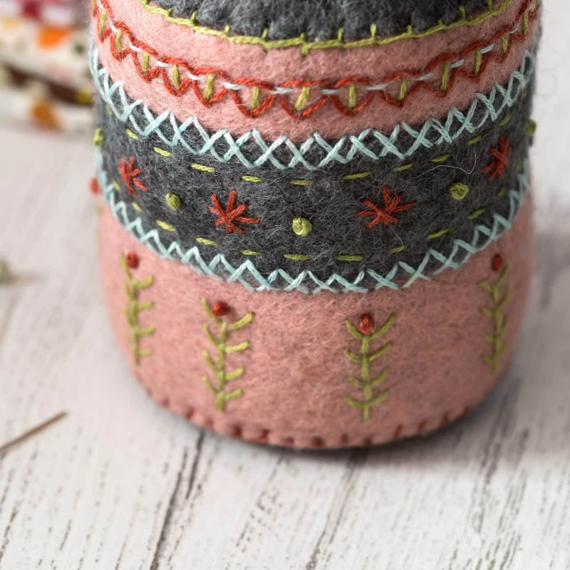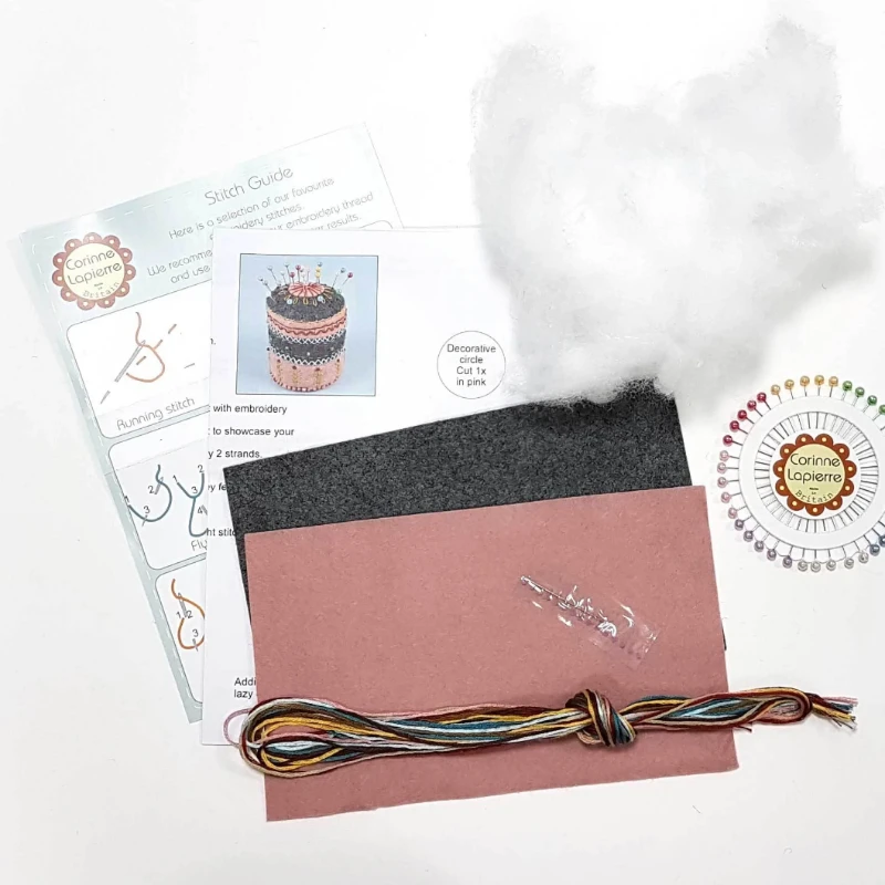 All Corinne’s kits include everything you need (with the exception of scissors!) to create the project including soft wool mix felt, DMC embroidery thread, a needle, and toy filling.