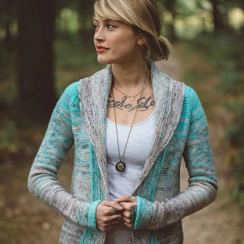 Another way to fade! This open cardigan is super cozy with its garter shawl collar! The Reverse Stockinette makes a stunning canvas to fade on for the most unique cardigan in your wardrobe!! This cardigan keeps me feeling cozy and stylish all in one!