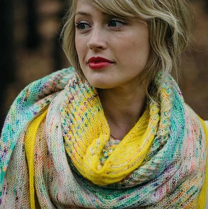 Quadruple your fading fun!! This shawl starts off with back to back fades thanks to beautiful, bouncy two color brioche! We then end with an epic band of all 6 colors faded together with some relaxing garter stitch! To celebrate this amazing fade, we’ll finish it off with faded tassels, and then wrap it around and wear it all year long!
