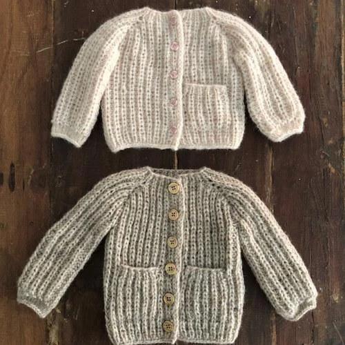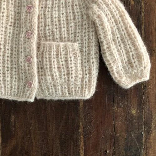 5 mm circular needle (60 cm) or longer for the ribbing in the neck and 6 mm circular needle (60 cm) or longer for the yoke, the body and the sleeves. 5 mm double pointed needles for the pocket edges and the sleeve cuffs and 6 mm double pointed needles for the pockets.