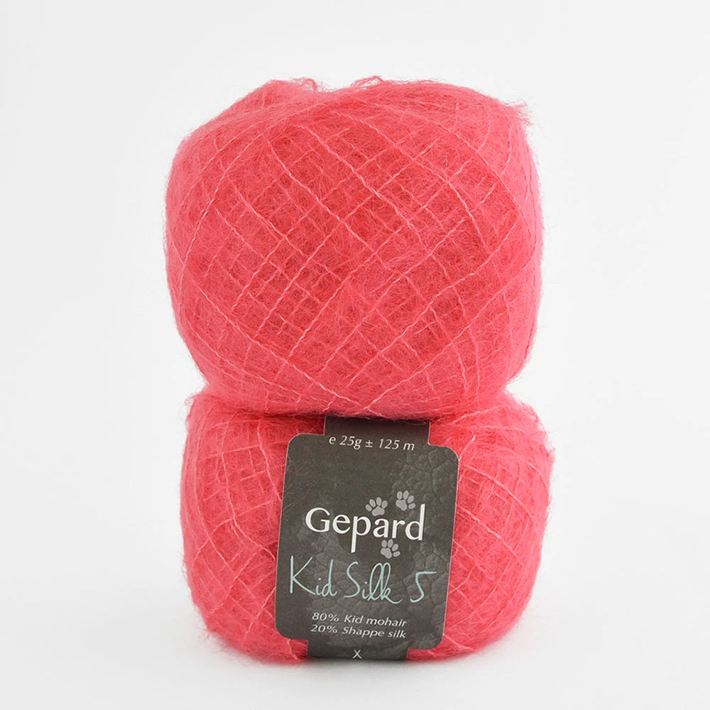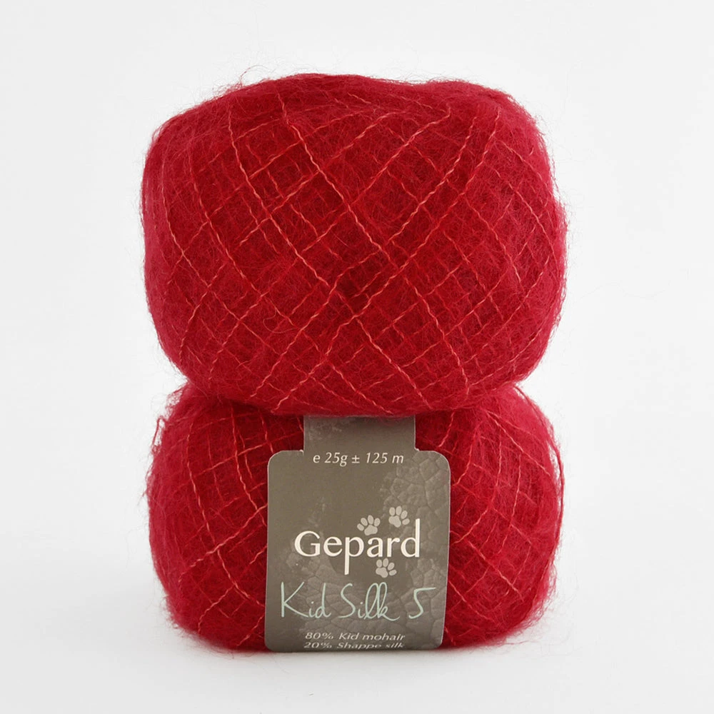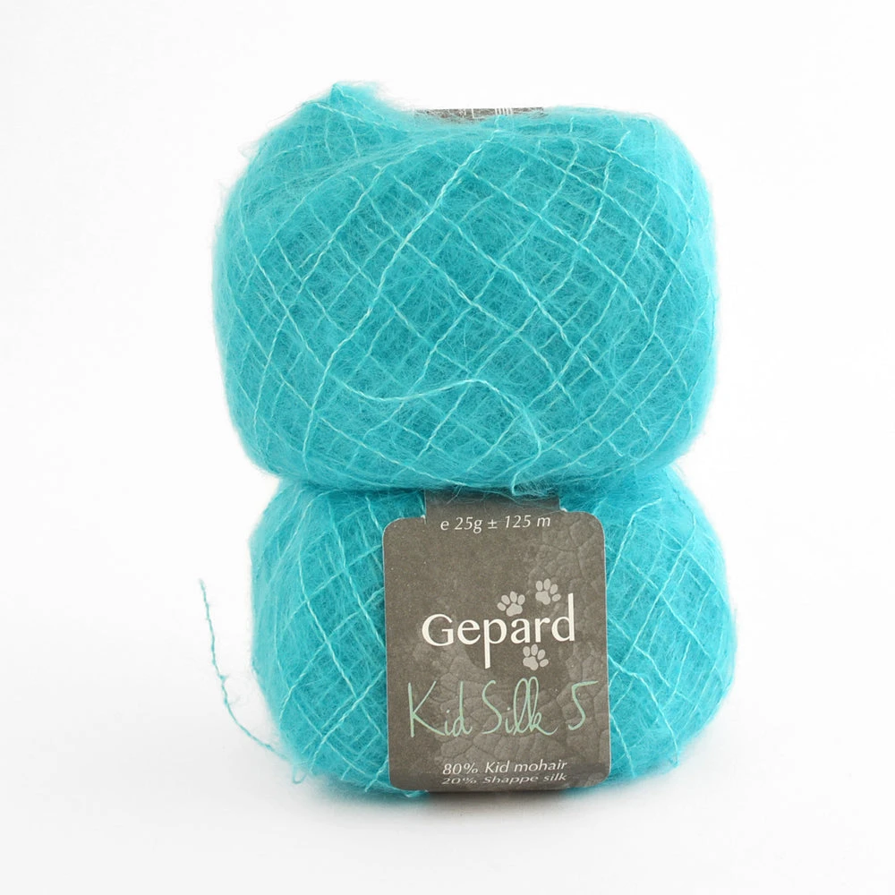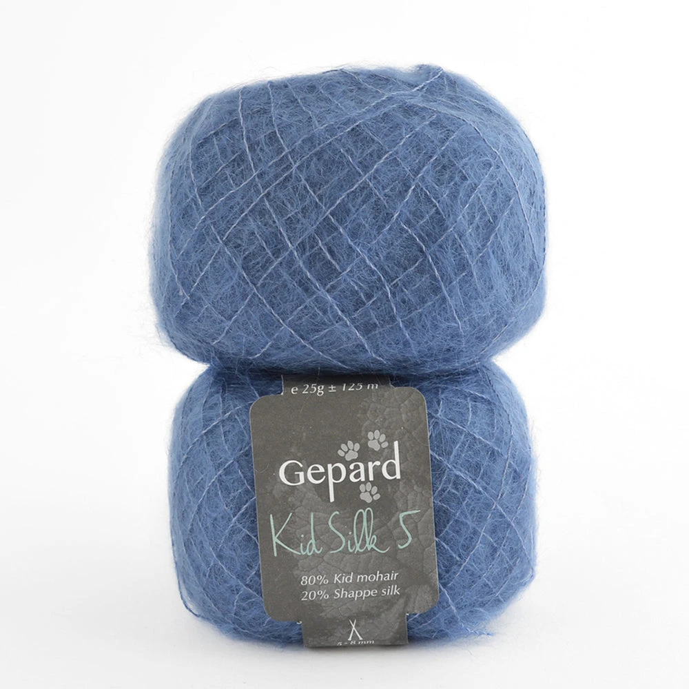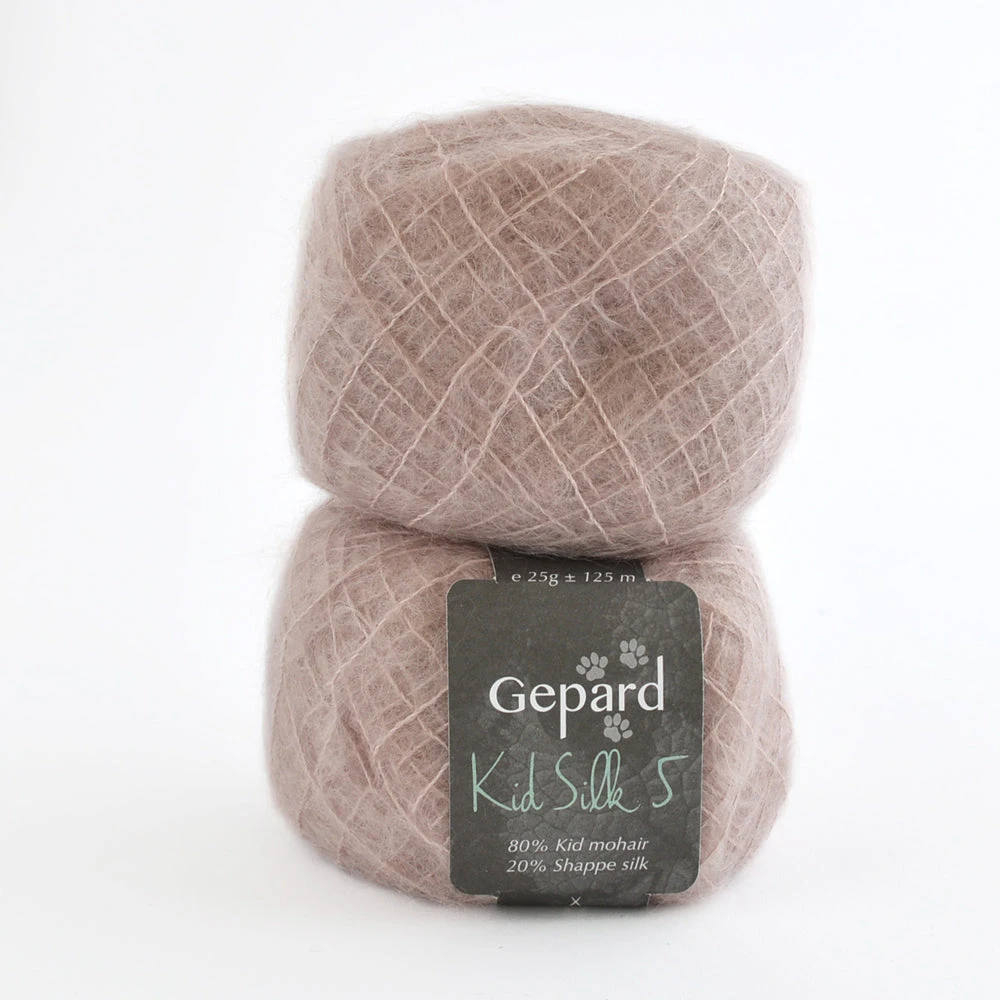 Although Kid Silk 5 is categorised as a laceweight yarn, it creates a much fluffier and chunkier knit compared to Gepard Kid Seta. This makes it perfect for using as a single strand option..