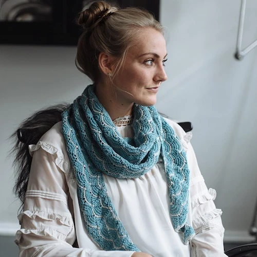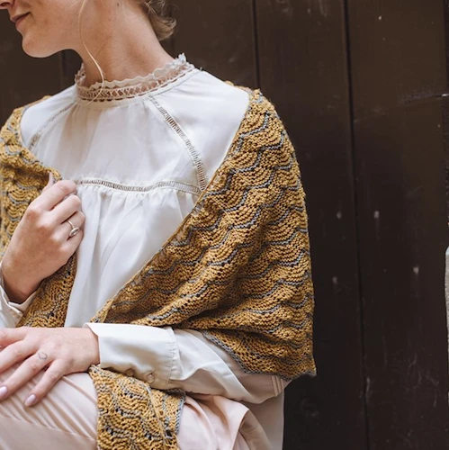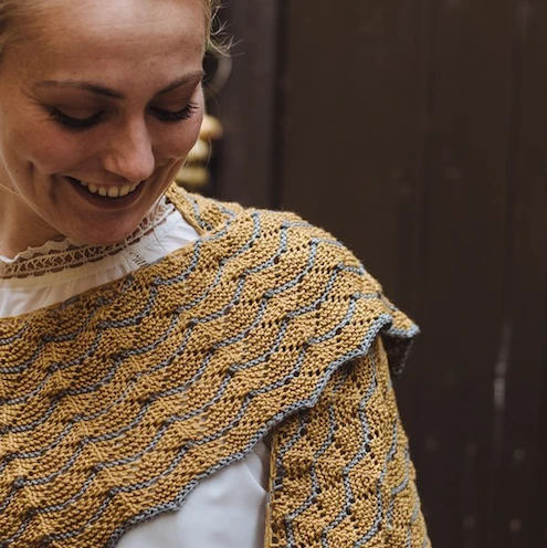 You can knit the shawl in two sizes. A small and a large shawl. You can use any yarn you want, but Trine has used Yaku because it is a perfect yarn for shawls. So soft and beautiful.