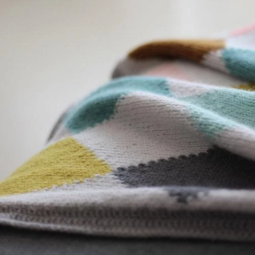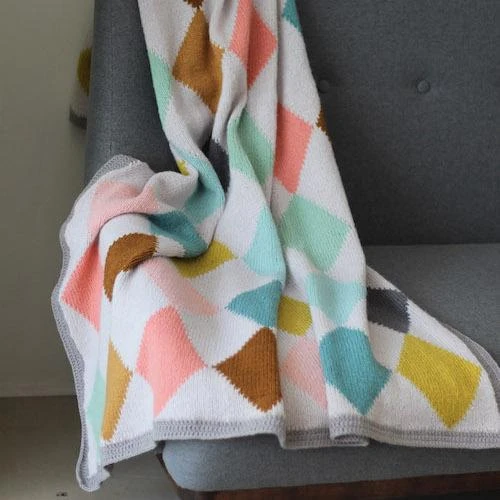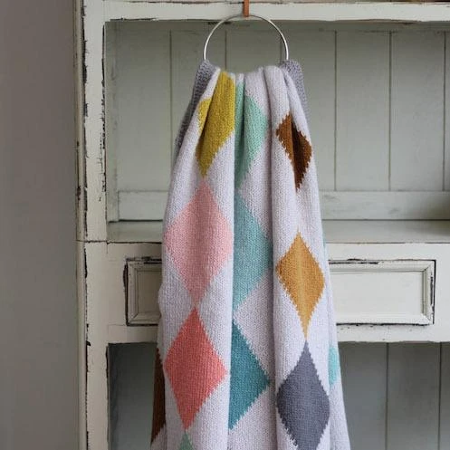NOTE: The blanket is knit flat back and forth using intarsia. Intarsia is a way to knit bigger sections in a contrasting colour in a single colour background. This is what creates the harlequin motif.