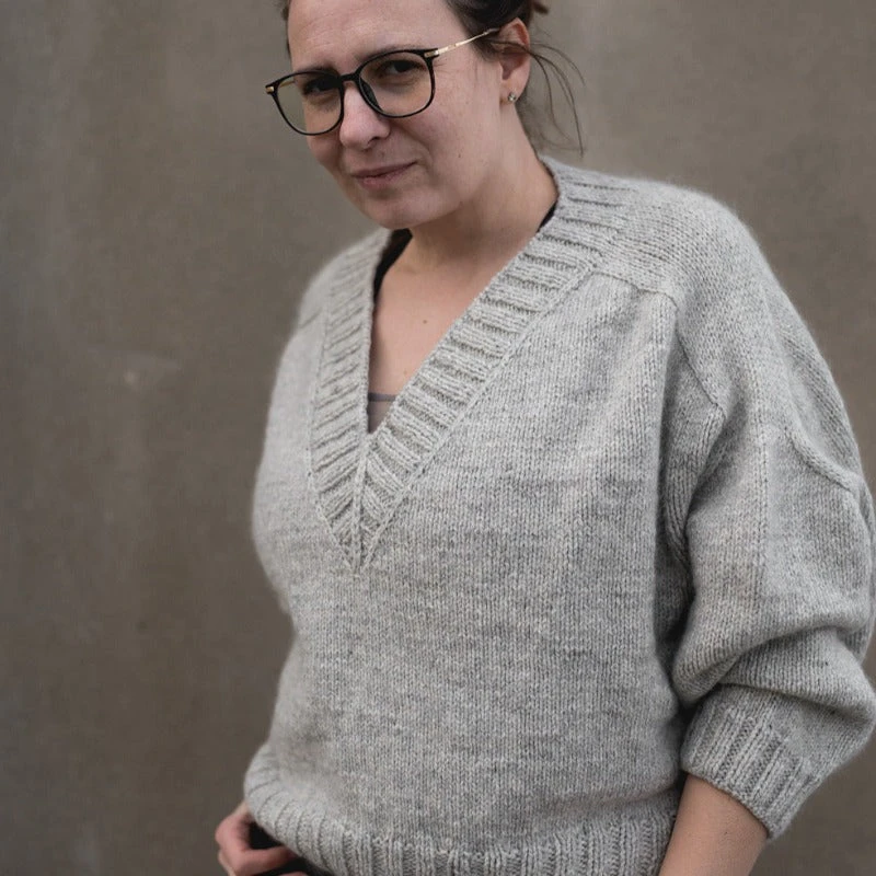 I WANNA BE YOUR SWEATER is a hip-length style knit with a V-neck and long narrowing sleeves. This sweater is worked top-down in Stockinette stitch pattern in raglan using increases M1L and M1R. V-Neck, cuffs and hem are worked in Rib stitch pattern. V-neck is worked only after finishing the sweater. The sweater body and sleeves can be easily made longer but of course, more yarn will be needed. I WANNA BE YOUR SWEATER is a timeless knit which looks very feminine, elegant and has a relaxed style.