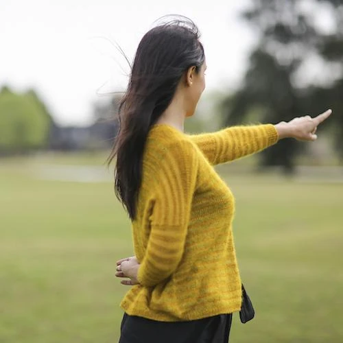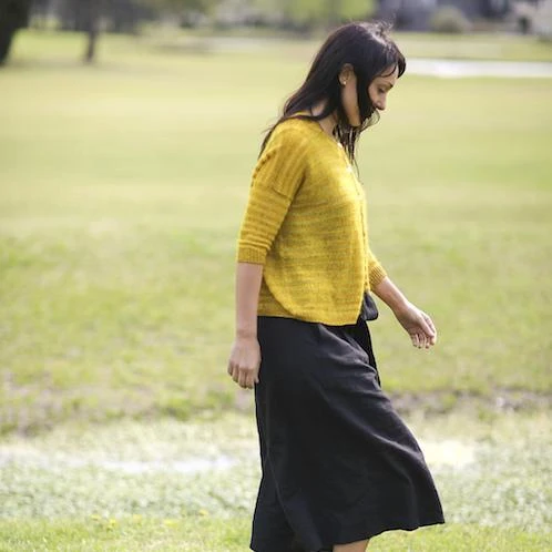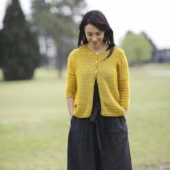 Elton is a basic cardigan with a mix of stripes and texture. It has a relaxed boxy fit and it is slightly cropped. It’s the perfect garment for lounging and relaxing. It’s worked seamlessly from the top down.