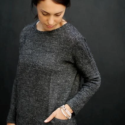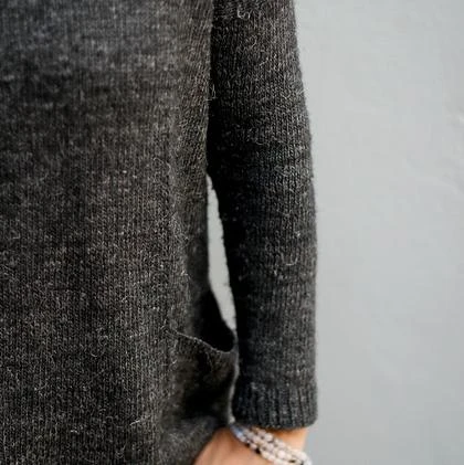 Granito is a basic sweater with a relaxed fit and big pockets on the sides. It’s the perfect garment for lounging and relaxing. It’s worked seamlessly from the top down.