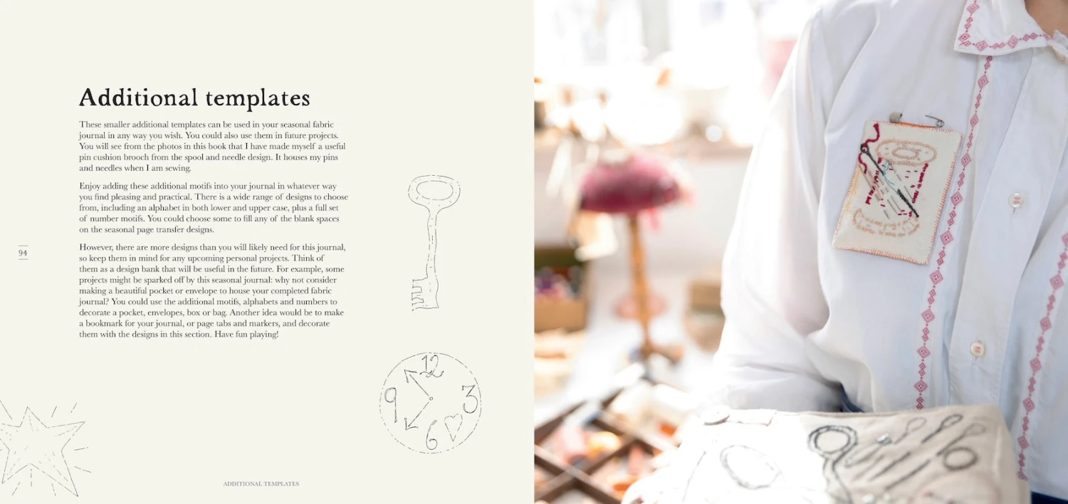 There are step-by-step instructions for how to make the fabric journal measuring 20cm x 20cm (7.8in x 7.8in). Jessie explains how to create your own seasonal story throughout the book so you can chart your year and mark any memorable occasions or events that you want to include, making it a wonderful memory book for a loved one or a family heirloom to be passed from generation to generation.