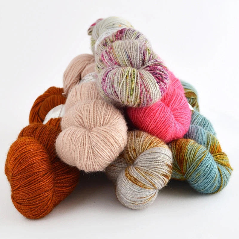 We also stock La Bien Aimee Merino DK , Tough Sock, Kumo, Mohair Silk , Merino Singles, Merino Sport, and Corrie Worsted and have some truly gorgeous kits made up with their yarns such as our Pop Spots shawl, Siren Song shawl, Tiny Tassels shawlette (which uses the Cashmerino as the main yarn!), and our new version of On the Spice Market shawl kits.