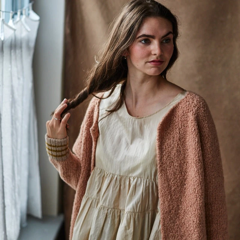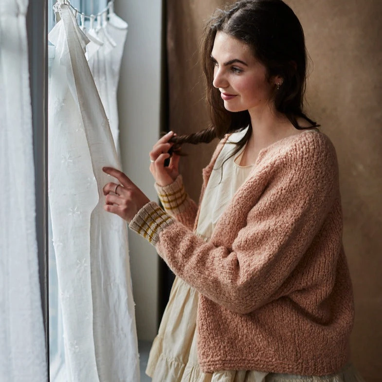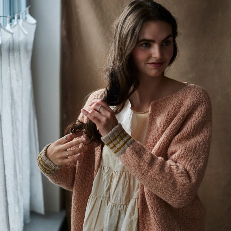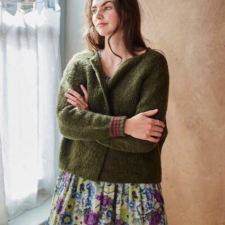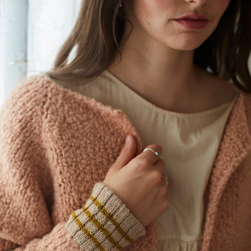 The coziest of cardigans is based on one of Susan’s favourite old knits. This is more like a bomber or varsity jacket that you’ll wind up wearing all the time. It’s so soft, cuddly, and cosy, we had to name it Cloud.