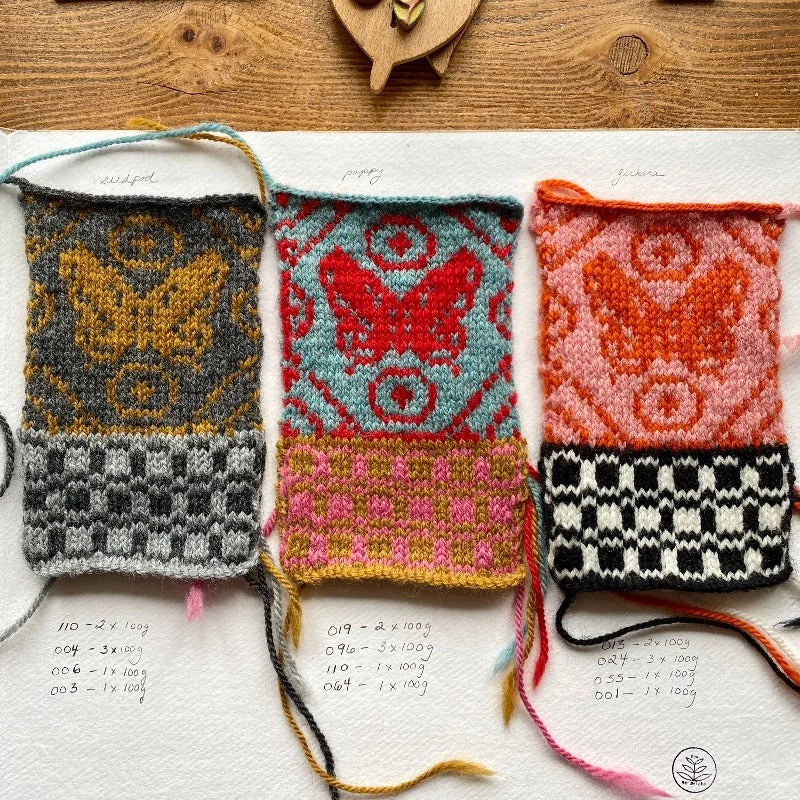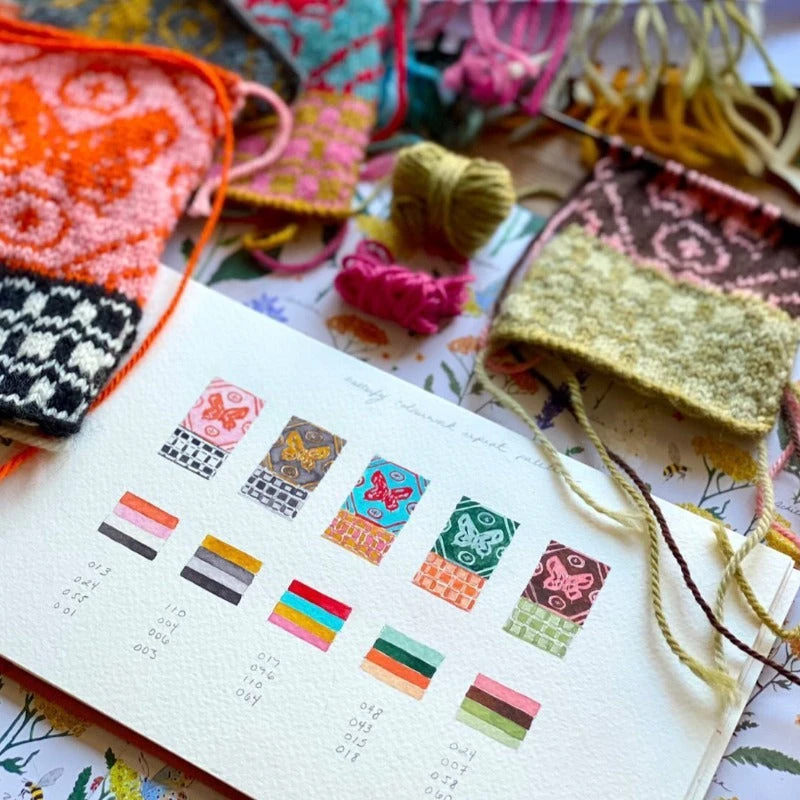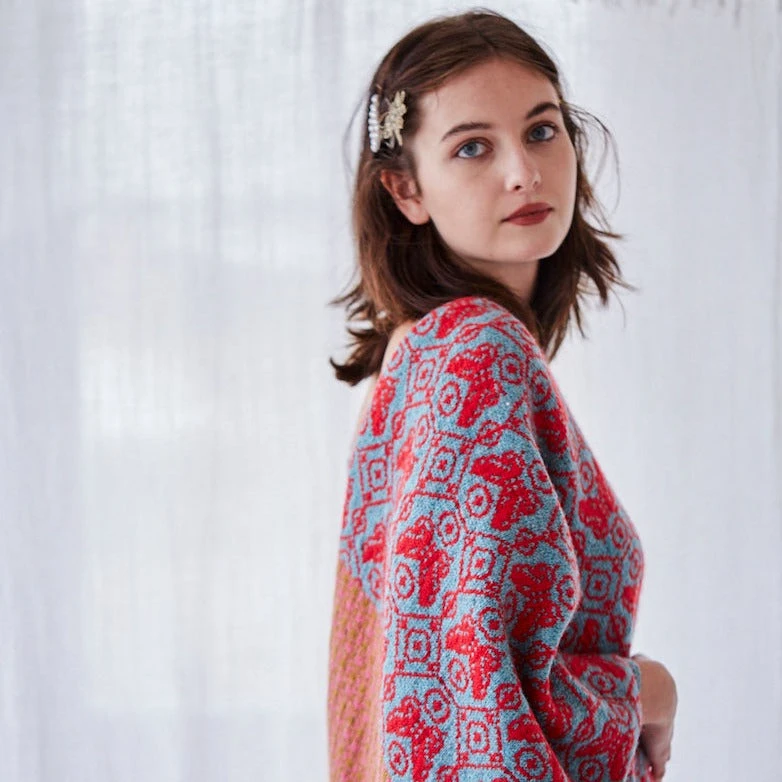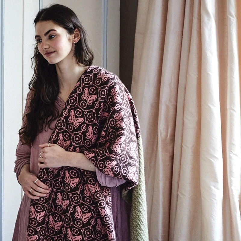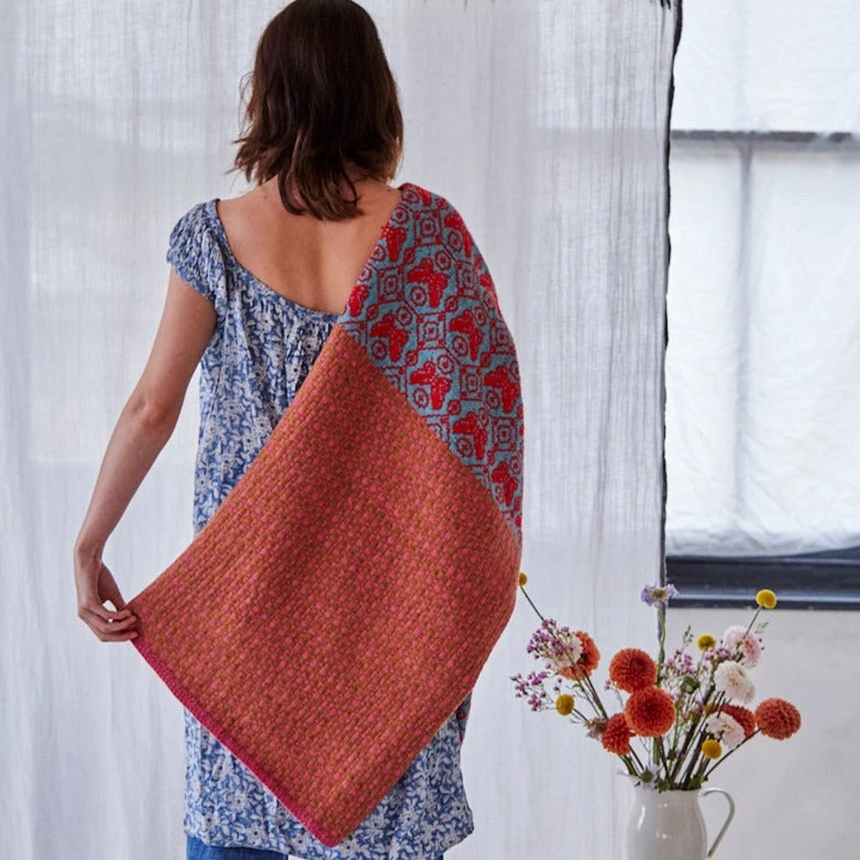 The Dreaming of Butterflies wrap is based on Dee’s Butterfly Blanket and shawl in her new book published by Laine publishing, The Knitted Fabric: Colourwork Projects for You and Your Home.