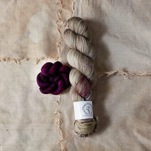 We have kit up for you luxurious hand-dyed yarns from La Bien Aimee in Cashmerino, the base that launched at Loop, with La Bien Aimee Merino Singles for the tassels. Sublime beauty!