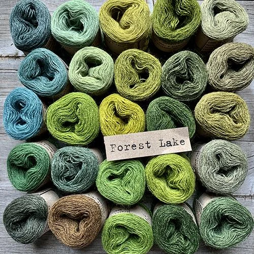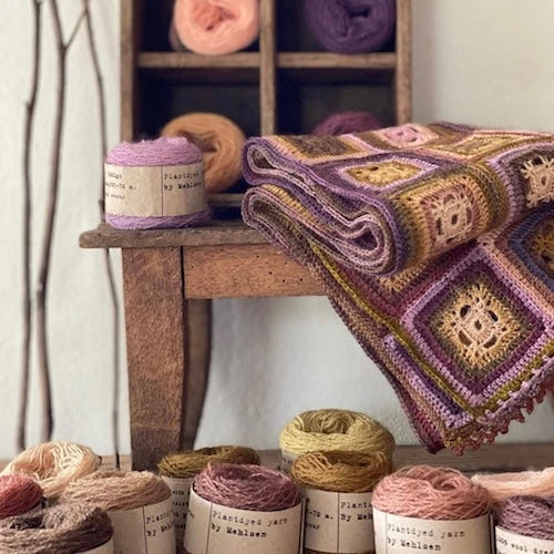 25 balls of Mehlsen plant-dyed yarn and the printed pattern.