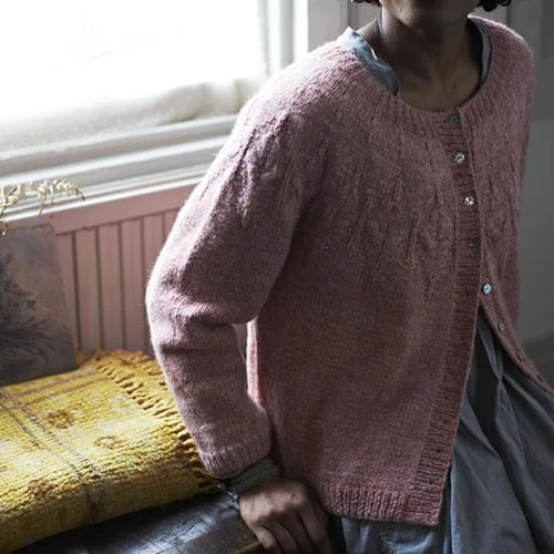 Our cropped cardigan, with an unusual cable motif on the yoke, is worked seamlessly in the softest Alpaca Tweed yarn hand-dyed especially for Loop.Â