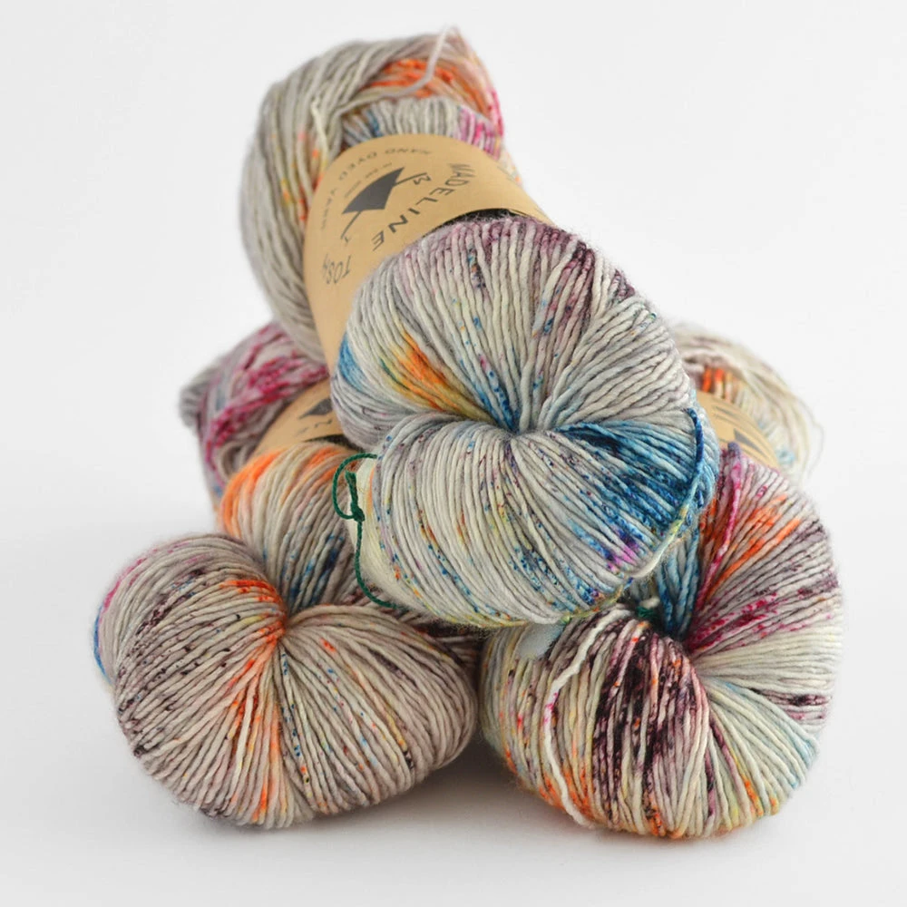 Tosh Merino Light is a 100% superwash merino wool, single-ply fingering weight yarn. with a generous 420 yards per skein, one skein is more than enough yardage to complete a pair of socks and two skeins can complete a full-sized lace project. Each incredibly soft skein is hand-dyed in small dye lots.