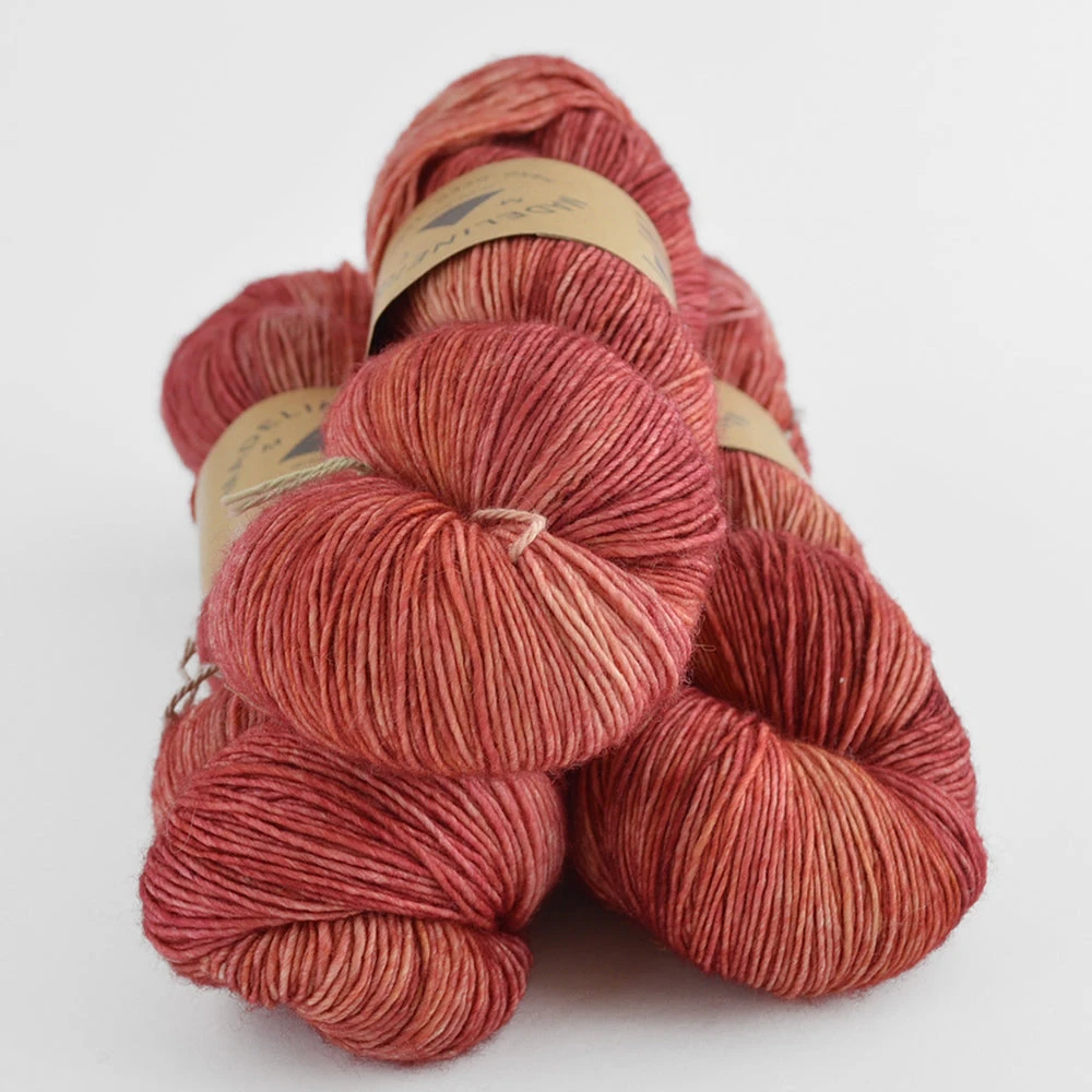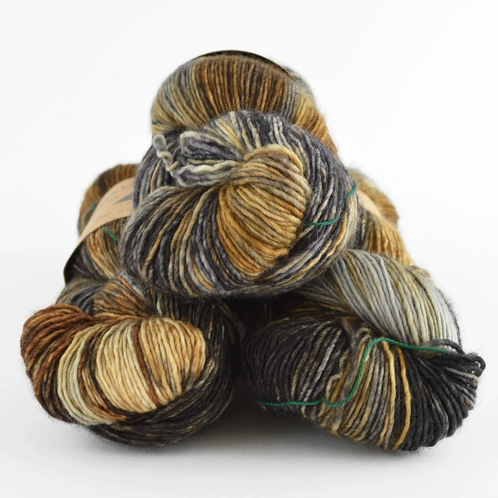 Please note that as this is a hand-dyed yarn, each skein is unique. We recommend striping alternate skeins when using more than one in order to achieve a more natural gradation.