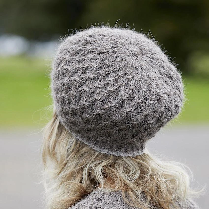 2 skeins of the desired yarn, as well as a leftover bit for the edge. If you prefer the baret to be solid, the only 2 skeins. The shown sample is knit in Lys brunmeleret (6920) and Elfenben (6100) for the cast on edge.