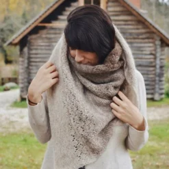 Aito is an asymmetrical shawl that playes with different shades of brown. It is like Plötulopi, an unspun yarn by the Icelandic Ístex. The beautiful fade is achieved by using a colour changing method called split splicing.