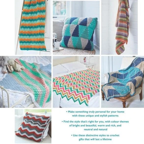Laura Strutt brings you a range of new designs for blankets, throws, and cushion covers. Divided by colour theme – Bright and Beautiful, Warm and Rich, and Neutral and Natural – with modern designs, there is something for every home, whatever your decorating style.