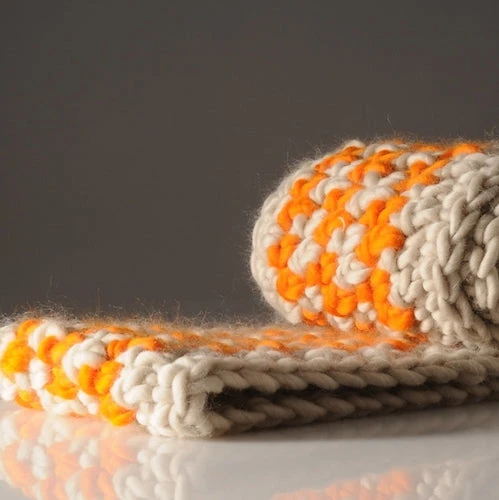 The longer cowl uses two skeins of the main colour and one contrast colour and the smaller cowl uses just two contrast skeins of Plump.
