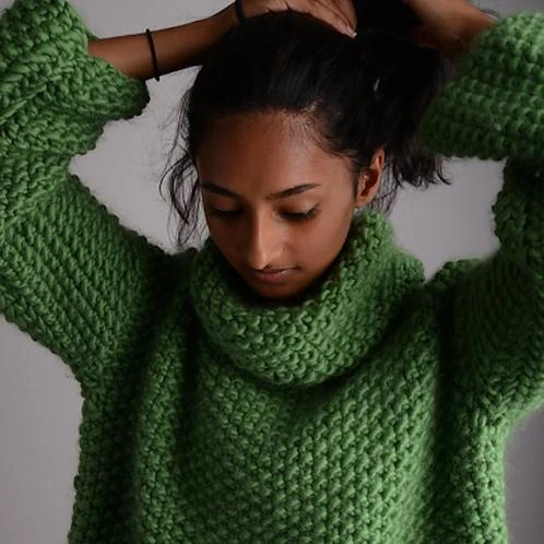 This beautiful jumper is knitted flat from the bottom up and has the most amazing lofty texture; I absolutely love it! The entire project is knitted in moss (seed) stitch on 10mm needles and as the yarn is so chunky it’s super easy to spot if you have gone wrong which is my usual gripe with this stitch.