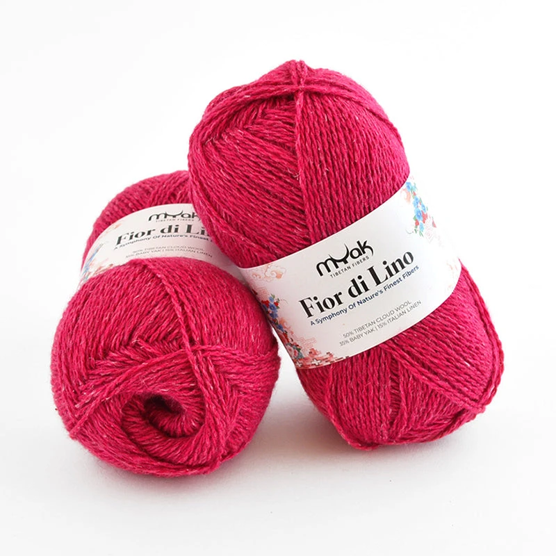 This unique fingering-weight blend combines 15% Italian Linen, 35% Baby Yak, and 50% Tibetan Cloud, offering a harmonious mix of linen’s crisp texture, baby yak’s unparalleled softness, and the warmth of Tibetan wool. Inspired by the landscapes of Italy and the Tibetan Plateau, Fior di Lino brings together natural beauty and refined luxury.