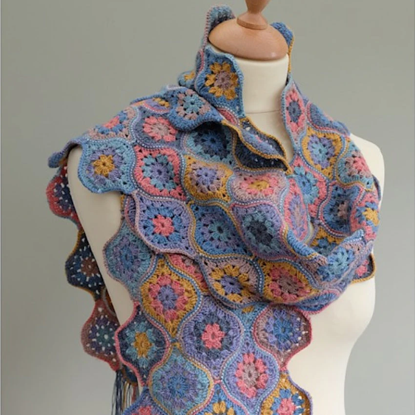 The pattern for the lantern shape motif is based on a granny hexagon pattern, but Jane has made a few changes to come up with the curved design the tessellates.