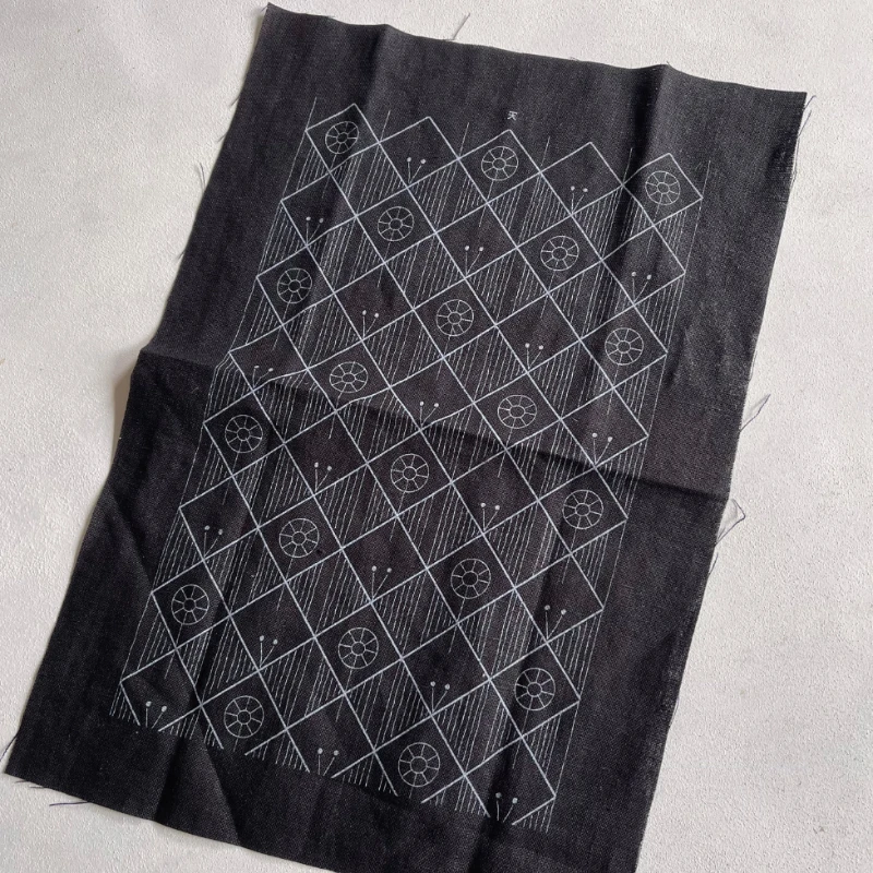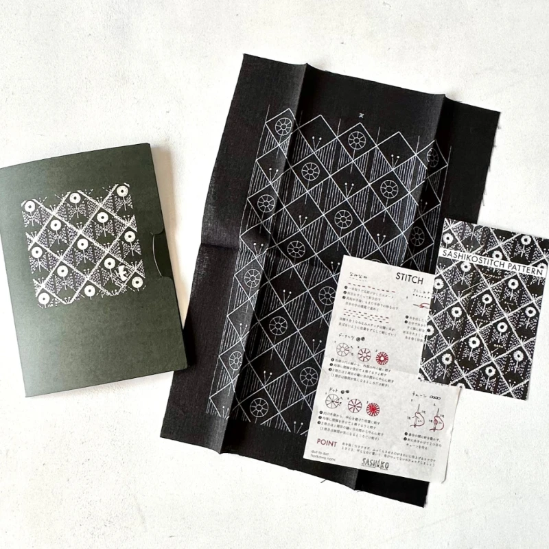 The sashiko thread used is a slightly thin unbleached sashiko thread (30m x 2 bundles), but you can also use #5 embroidery thread (25m x 2 bundles) for a beautiful finish. (Thread and needle is not included in the kit)