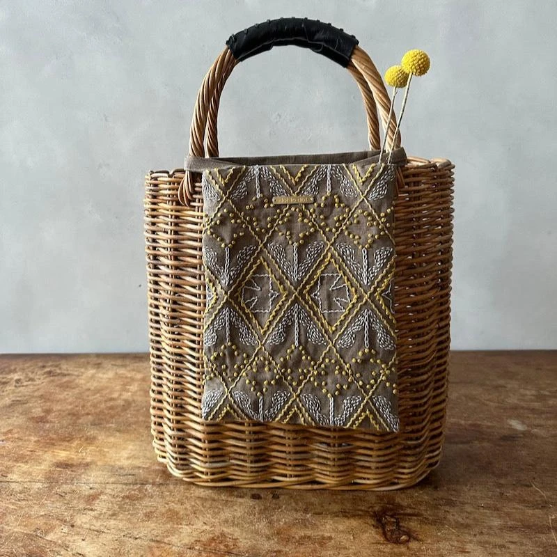 Use Horikawa wave sashiko thread for a charming, cozy feel, and let your creativity flow as you stitch your own design. Just be sure to wash it gently with water after completion to prevent any fading or chipping. And when ironing, be sure to use a soft towel as a pressing cloth to preserve the plumpness of the embroidery. Enjoy creating your one-of-a-kind bag with this kit