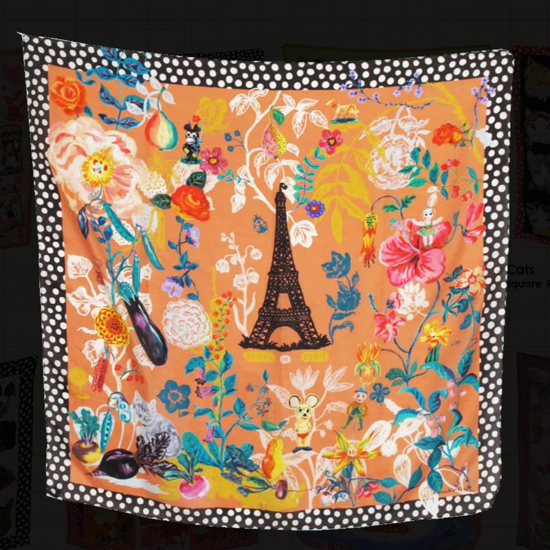 This exquisite scarf is 100% Silk and designed by Nathalie Lete in a limited Edition. It is gorgeous to wear or framed as a piece of art.