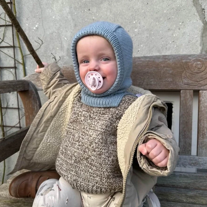 Measure the head circumference of the child to determine which size to knit. The sizes are the approx. equivalent to the ages 2-4 months (4-6 months) 6-12 months (1-2 years) 2-5 years (5-9 years) – but as head size can vary a lot from child to child, I recommend measuring the head circumference of the child.
