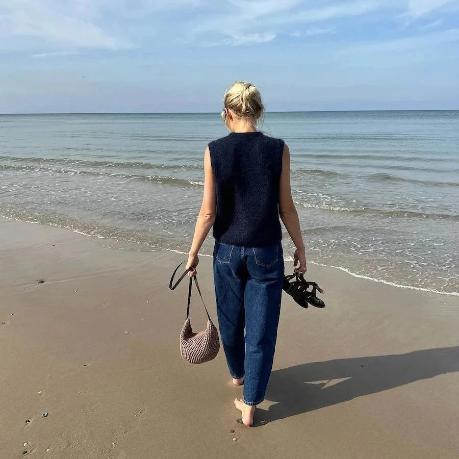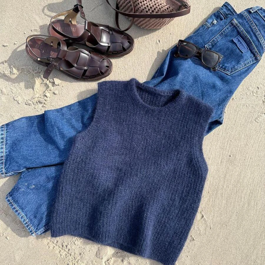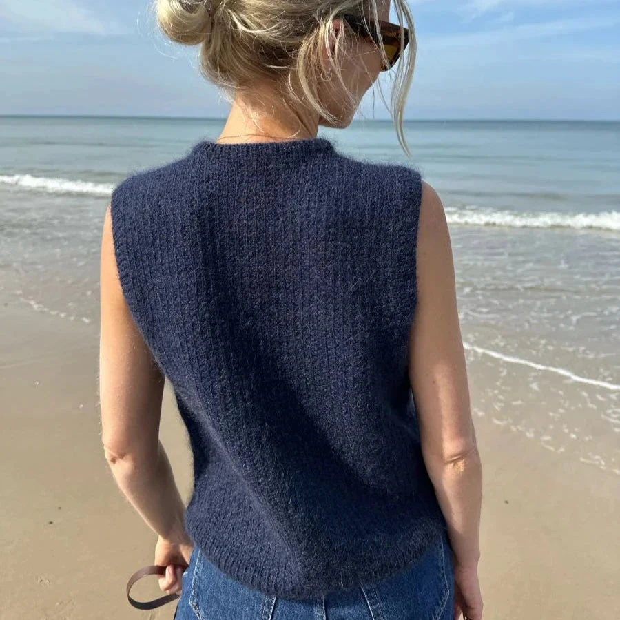 The Friday Slipover is worked from the top down in broken rib. First the back of the yoke is worked, then the shoulders, then the front of the yoke and finally the body. Rib edges are worked at the neck edge and along the armholes.