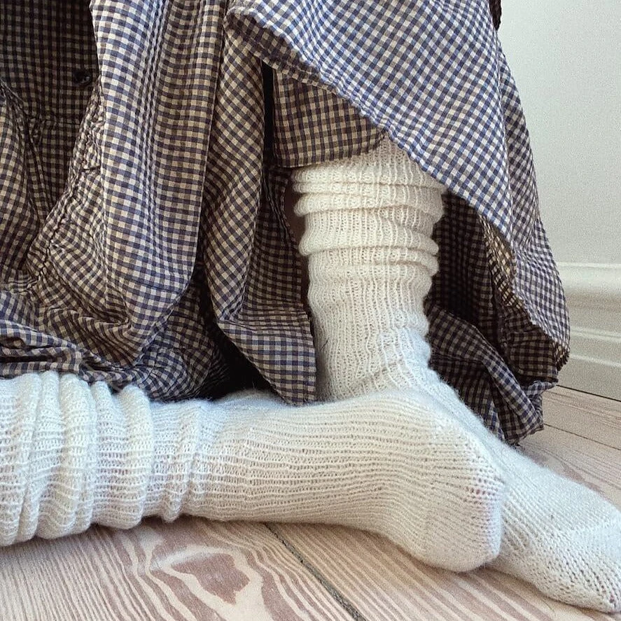 The Penny Socks are worked top down, from the cuff to the toe. The socks are worked in ribbing (k1, p1) on the leg and instep and stockinette stitch on the heel and sole of the foot.