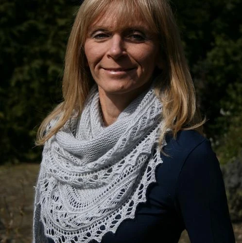 This shawl requires some lace knitting and patterning on both sides, and is suitable for knitters of intermediate and advanced skill levels.