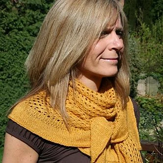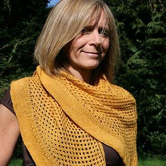 Gold Honeycomb Shawl uses a simple and very easy to knit open stitch pattern. Worked from the top down it knits up quickly and requires basic knitting skills only. The instructions are written only as they are very simple and the repetition of the pattern can be quickly memorised. Great for the novice shawl knitter! It uses only 2 skeins of fingering/sock weight yarn and the size can easily be adjusted. The model shown is done in Jade Sapphire cashmere/silk fingering yarn. Great all seasons accesory particularly good for cool summer evenings!