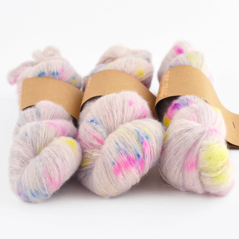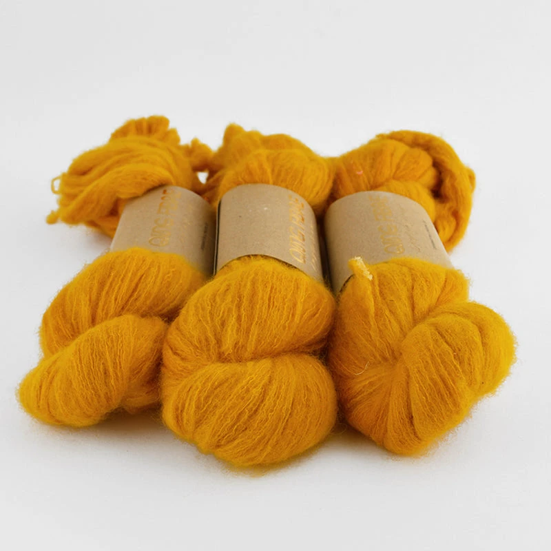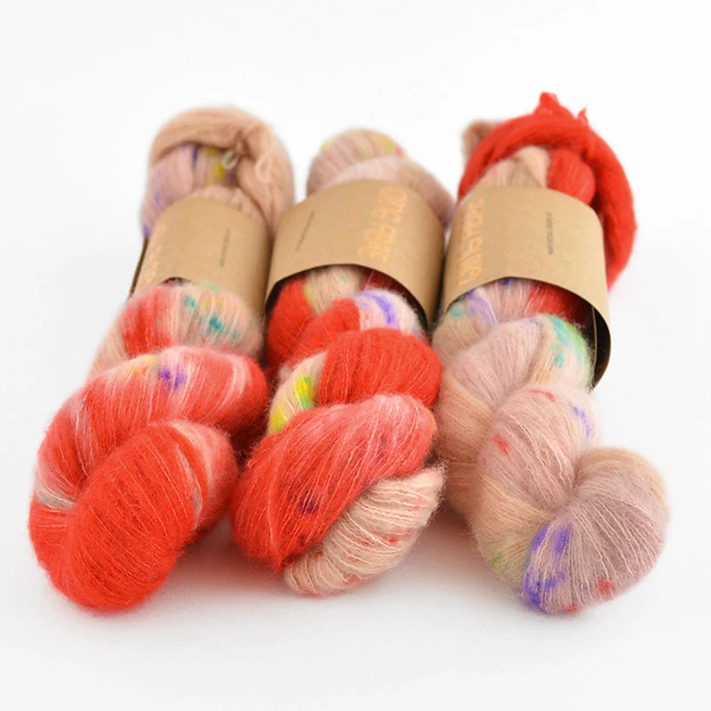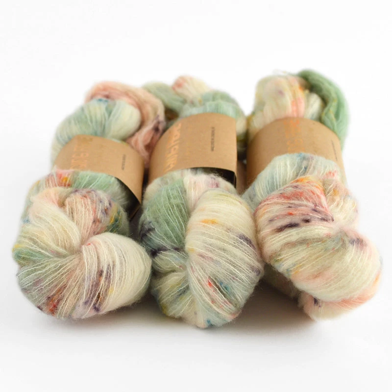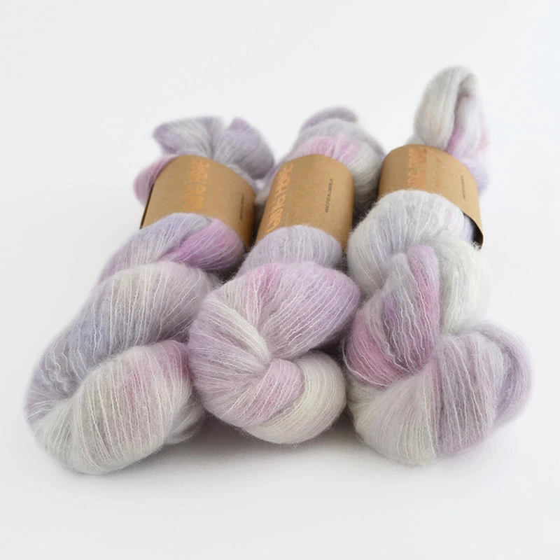 Made up of 79% supreme fluffy Cashmere and 21% silk, each skein is 25g with 300m/325yds of fuzzy heaven. We recommend using 2.5mm for a tighter gauge or going up to 4mm for a more drapey garment or accessory.