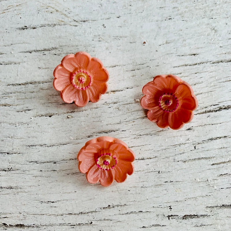 They have a charming vibe of anything from the 1930’s-1960’s and would look pretty fabulous on anything from a string of different coloured ones in a row on a cardigan, to a couple used for a baby sweater.