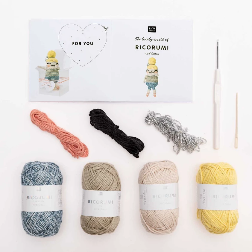 Rico design has taken their cute ricorumi characters and made a wonderful kit! These kits are an excellent way to dip into the wonderful world of amigurumi.