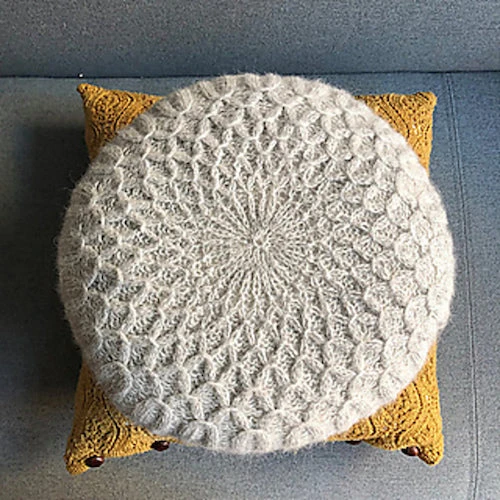 Gauge:Â The cushion cover is worked in the round from the center and out, therefore it is only possible to measure the gauge at the end of the work. It is recommended to knit a swatch