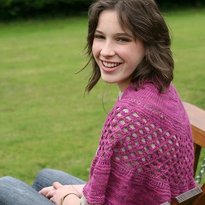 This open textural lace stitch creates a richly textured yoke pattern that is fun to knit. Knit from the top down, this cardigan uses a lightweight yarn for a wonderful light cardigan that will enhance any outfit.