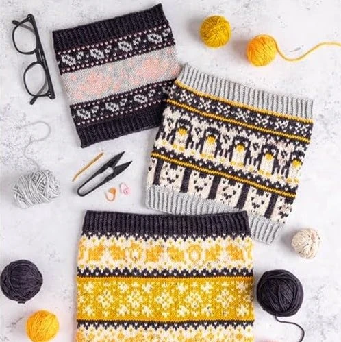 The patterns only combine two colours on each row so it’s suitable for beginners to colorwork and because it’s done on a small scale it’s a great way for absolute beginners to try their hand at colorwork, but the large selection of patterns and designs means that more advanced knitters will have plenty to inspire them.