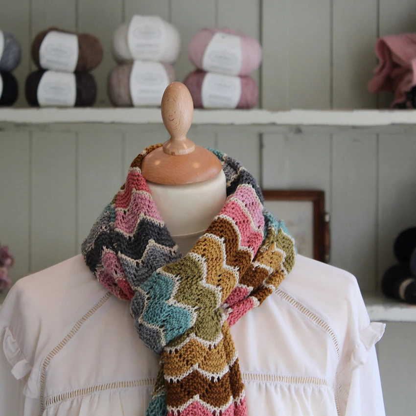 Designed by Trine Bertelsen of CaMaRose, this beautiful scarf uses the wonderfully soft Yaku and a very simple but beautiful lace stitch also found in Loop’s Yaku Blanket. So colourful and fun!