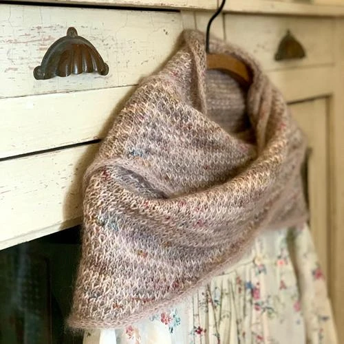 This beautiful triangular shawl is knitted from the bottom with increases on both sides. Alternating with gorgeous hand-dyed Merino Sport from La Bien Aimeé and the Gepard Kid Seta laceweight silk and mohair.