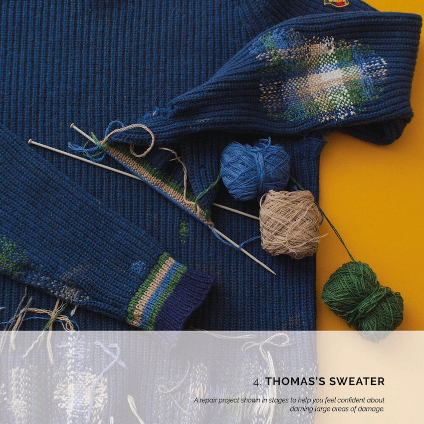 Inside: what you’ll need by way of equipment l the best stitches for darning and embroidery and how to make them l how to mend cuffs, edges and holes l how knitwear behaves and how to look after it l colour and design